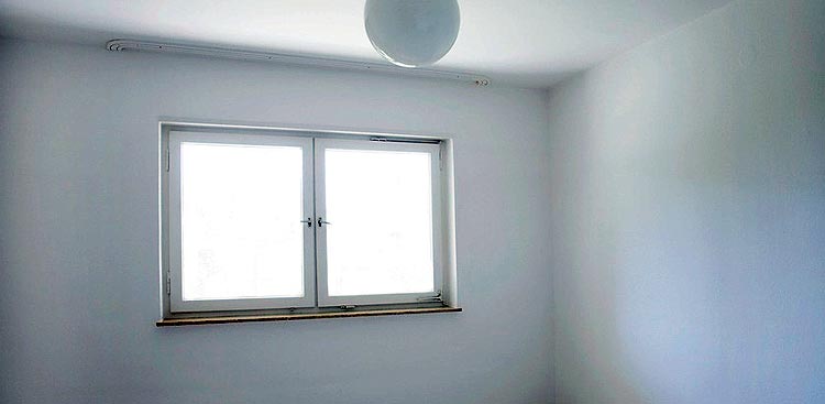 Cloisons de distribution et doublage, plafonds en plâtre traditionnel et briques rouges.